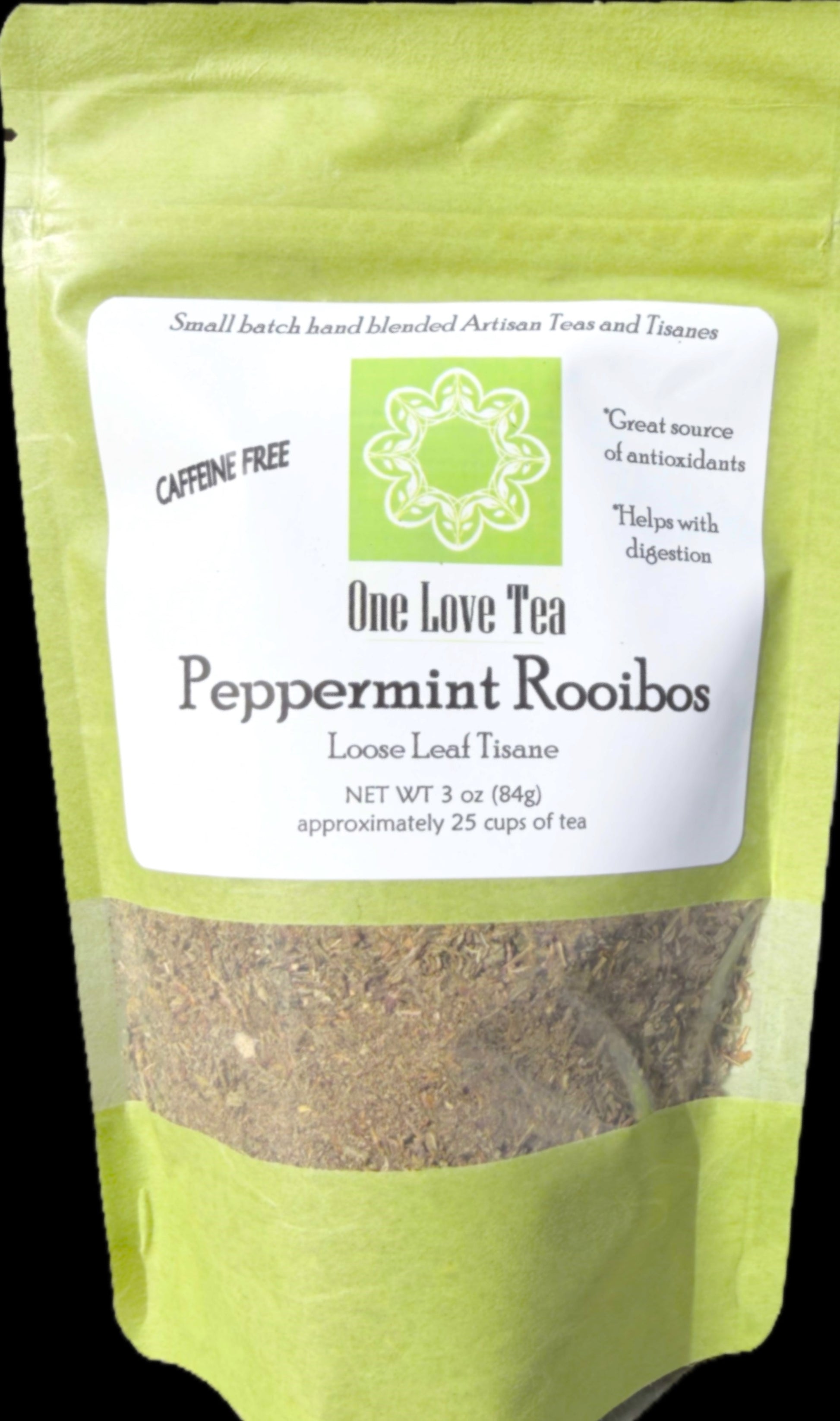 Rooibos paired with Peppermint Leaves, provide a refreshing drink either iced or hot. Rooibos for centuries has been a traditional tea of South Africa and is a great source of antioxidants.